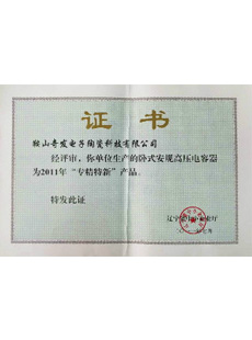 產品包括塑封型貼片安規陶瓷電容器,插腳型中高壓、安規陶瓷電容器,超高壓陶瓷電容器,壓敏電阻器,系列安規陶瓷電容器芯片,系列電容器陶瓷粉料等。其中安規、超高壓陶瓷電容器全電極芯片生產技術、塑封型貼片安規陶瓷電容器、塑封型貼片壓敏電阻器屬國際領先,獲十六項國家專利授權。